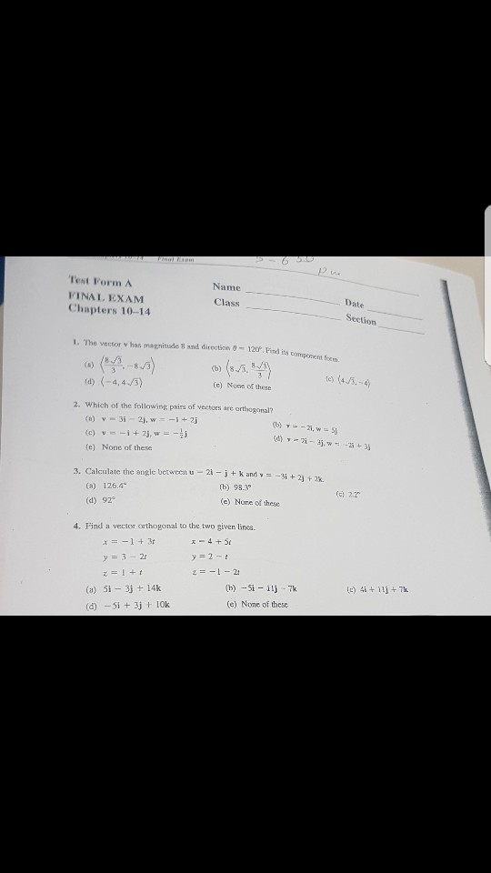 images of Solved: Name A Chapters EXAM ?Dat 12 Form ... 10-14 Test FINAL